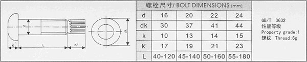 螺栓/螺母/墊圈尺寸表 |